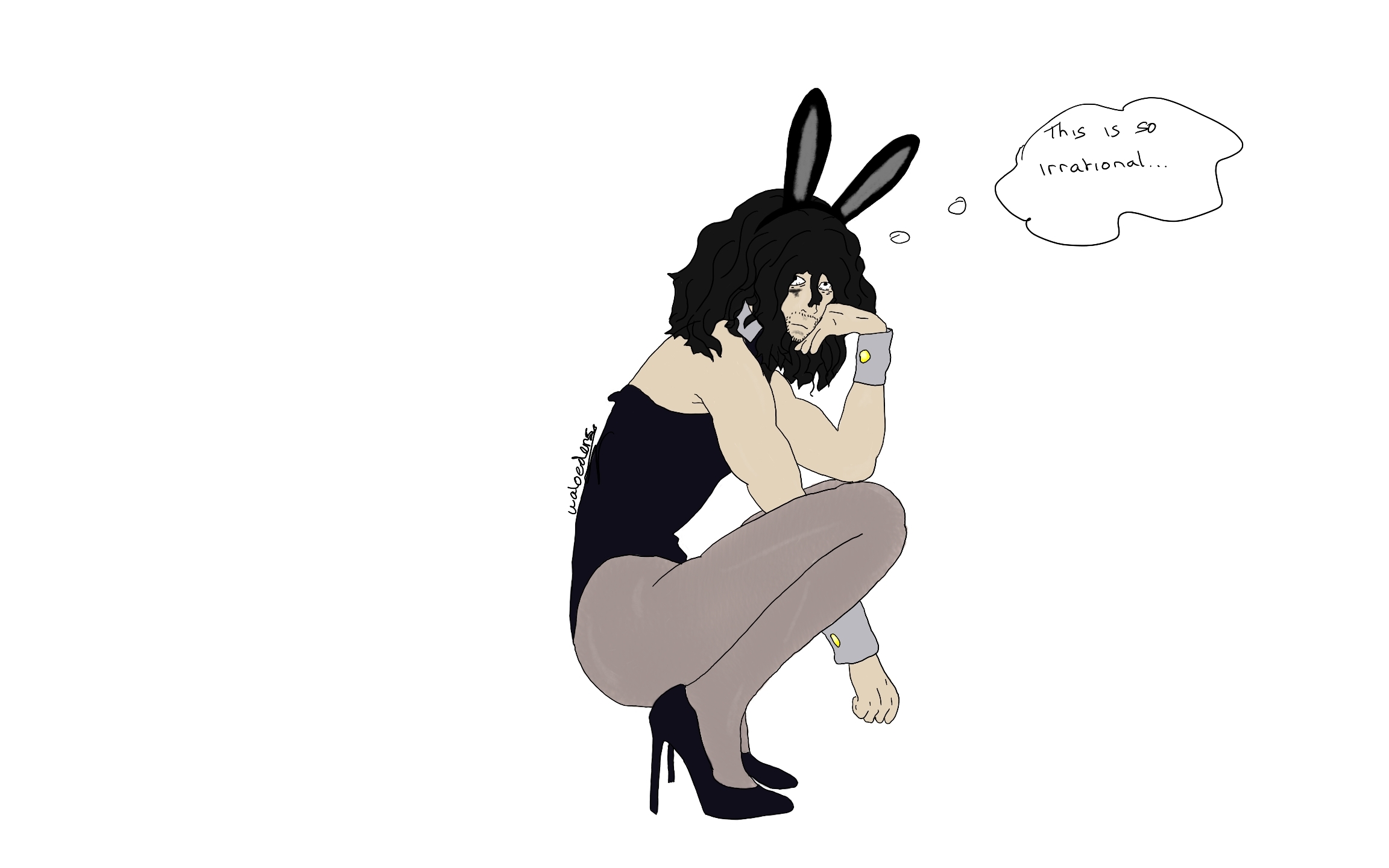 Zawa in a bunny suit, thinking "This is so irrational..."