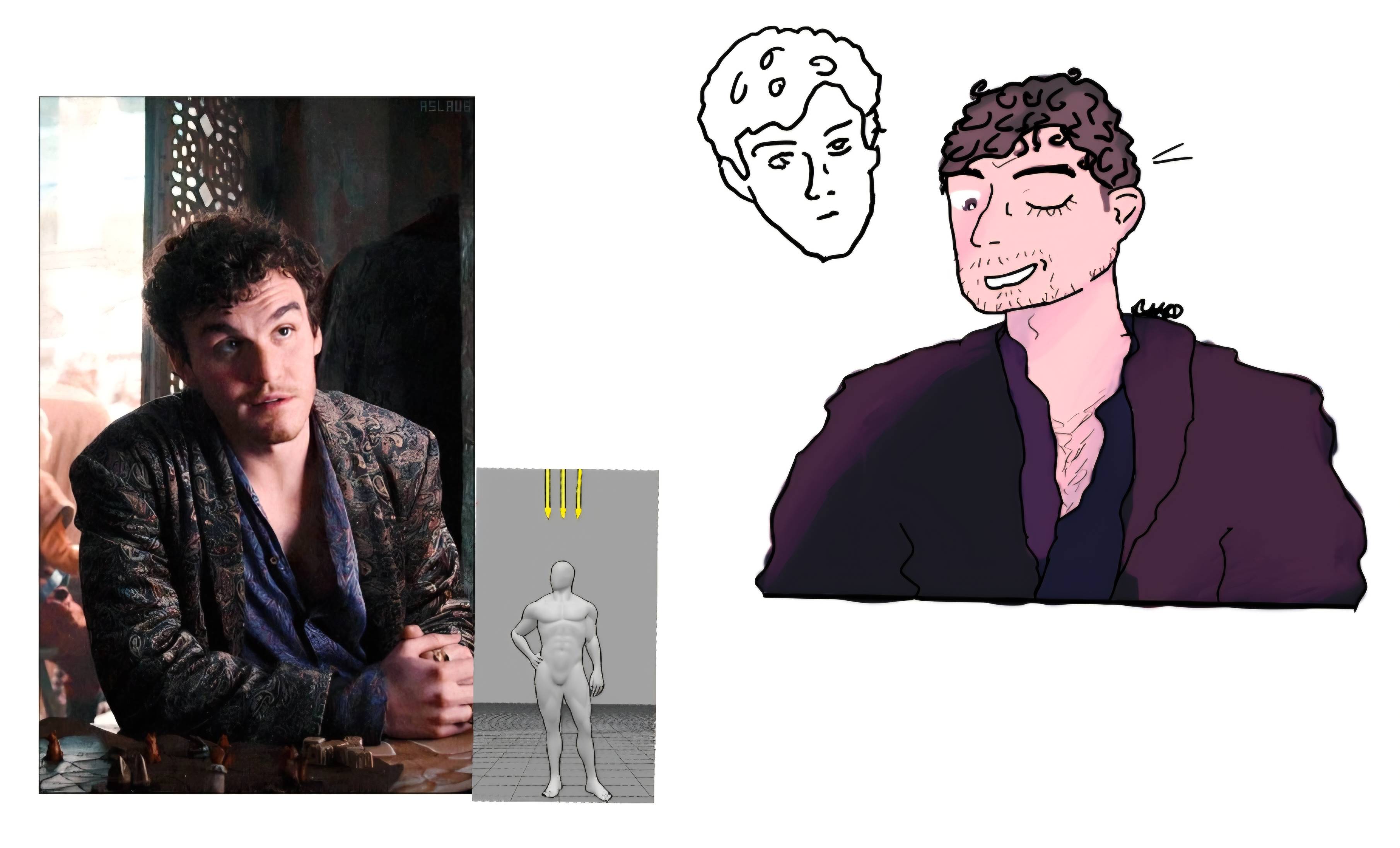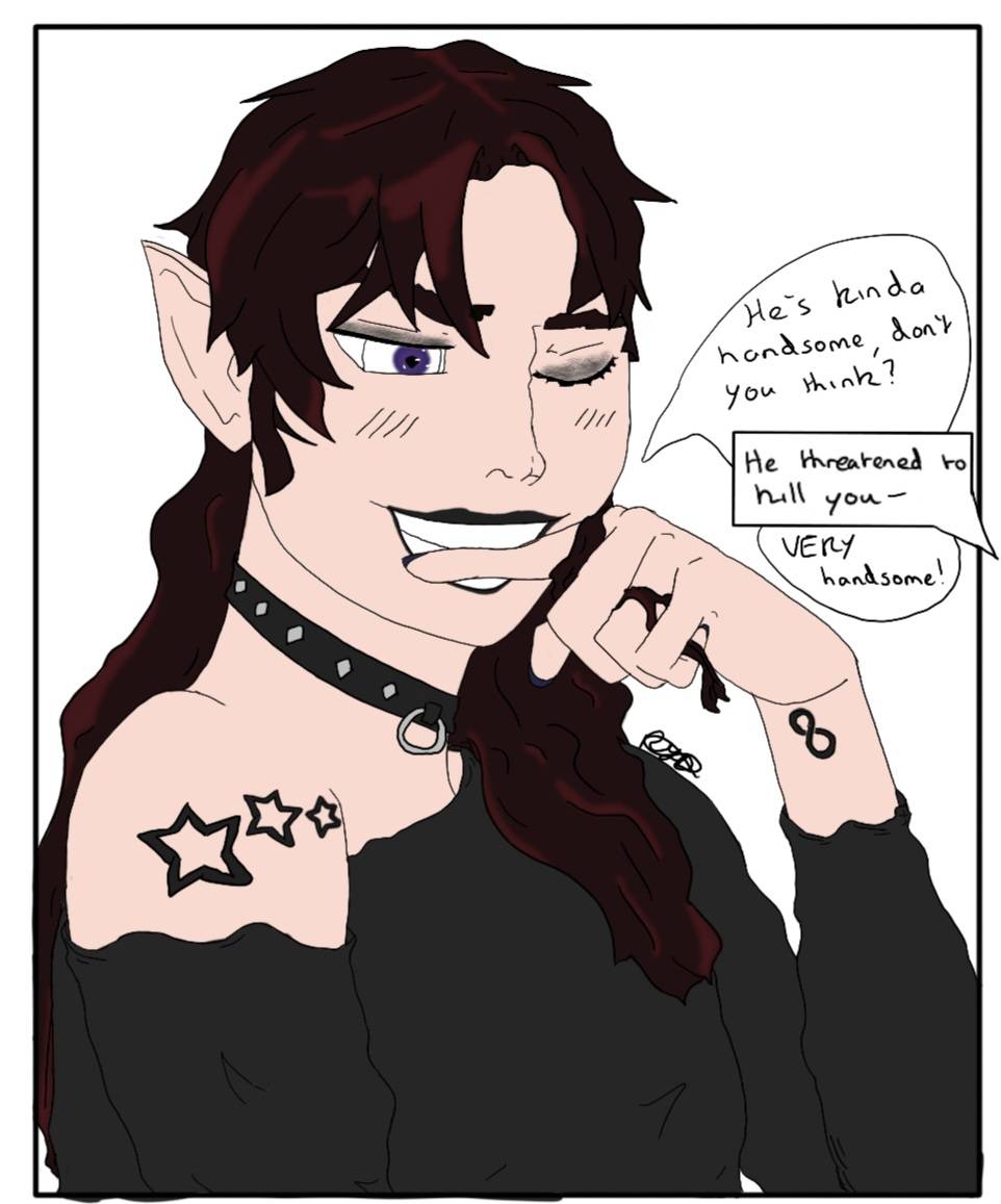 Ren biting his finger and twirling a strand of hair. He's saying "He's kinda handsome, don't you think?" He's interrupted by someone off-screen saying "He threatened to kill you-" and then he says "VERY handsome!"