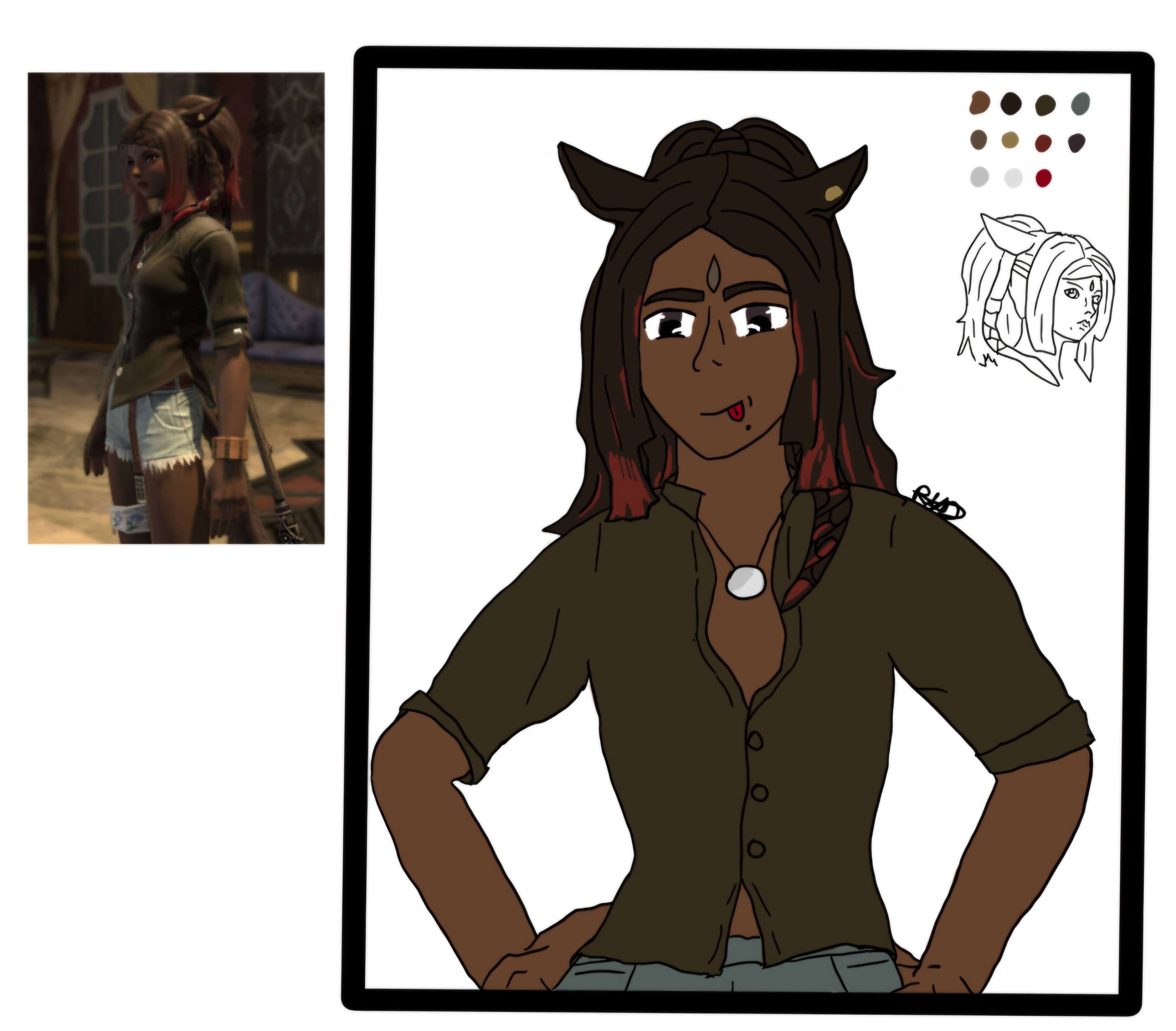 Nikki from Infinity Nikki with the colour palette of my OC Eamonn.